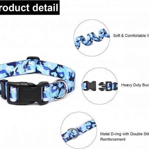 Mercano Adjustable Dog Collar – Special Design Patterns, Soft Nylon Comfortable Durable Pet Collar for Small Medium Large Dogs (S, Dog Camouflage Blue)