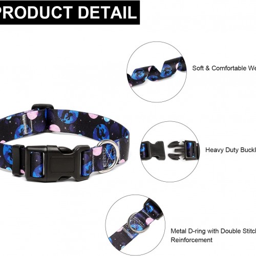 Mercano Adjustable Dog Collar – Special Design Patterns, Soft Nylon Comfortable Durable Pet Collar for Small Medium Large Dogs (S, Night Sky)