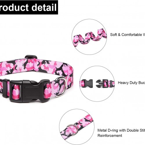 Mercano Adjustable Dog Collar – Special Design Patterns, Soft Nylon Comfortable Durable Pet Collar for Small Medium Large Dogs (XS, Dog Camouflage Pink)