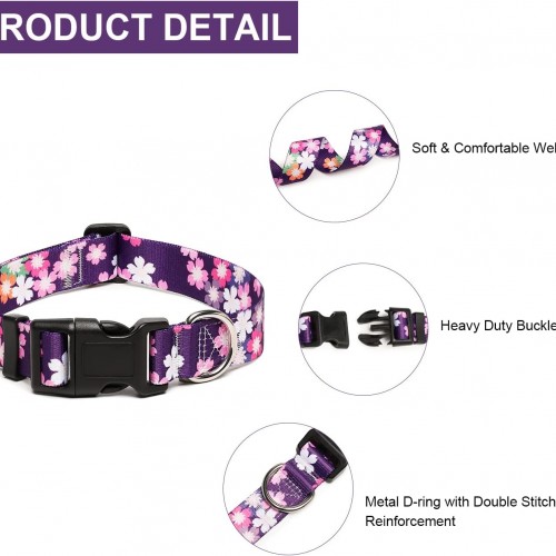 Mercano Adjustable Dog Collar – Special Design Patterns, Soft Nylon Comfortable Sturdy Pet Collar for Small Medium Large Dogs (M, Floral Pink)