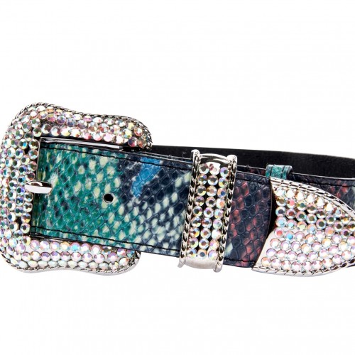 Mermaid Style Embossed Italian Leather/Swarovski Collar, Leash, Harness Set