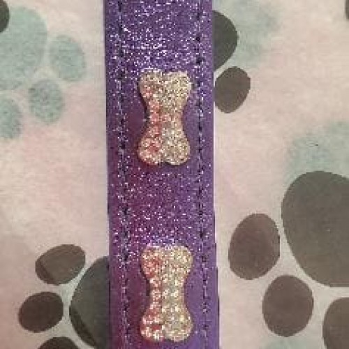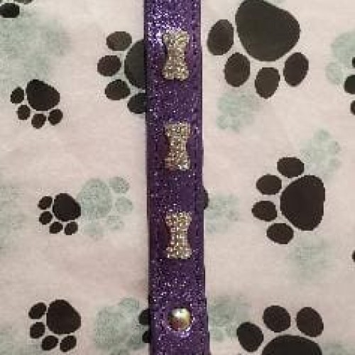 Elevate your dog’s style with our Metallic Crystal Bone Collars in purple. Made of high-quality materials, these collars are adorned with shimmering crystals in the shape of bones for a touch of sophistication. With comfort and fashion in mind, your furry friend will be the most stylish dog on the block!