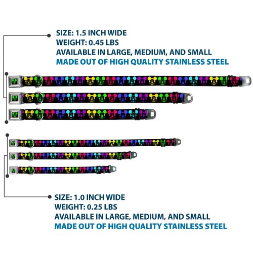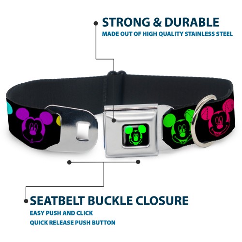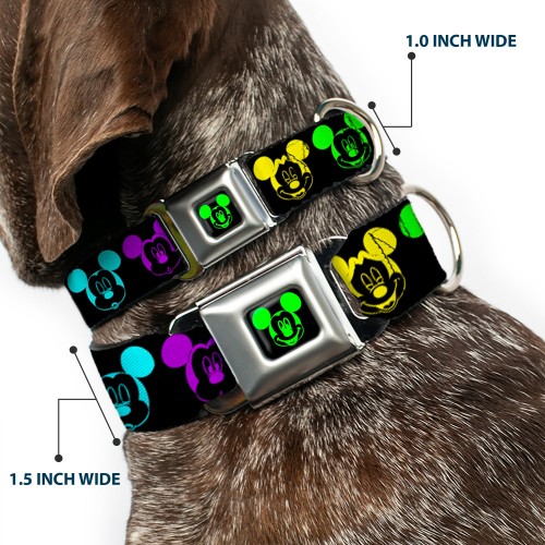 Mickey Mouse Expression2 Full Color Black Neon Green Seatbelt Buckle Collar – Mickey Expressions Black/Multi Neon