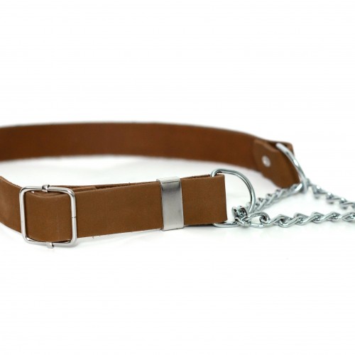 Made in the USA with your pup in mind. Fine European steel chain helps comfortably train your best friend. Designed with soft full-grain American leather and fine European steel hardware. Choose from a variety of colors to match your dog’s personality. A modern chic look that makes any dog the talk of the town.