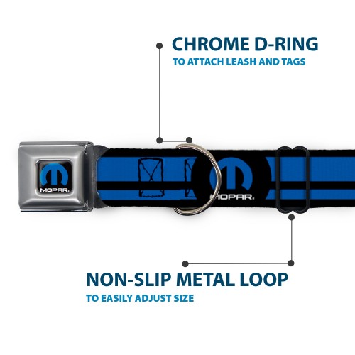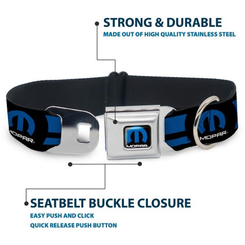 Your dog will be the talk of the town when people notice they’re wearing this awesome SeatBelt Dog Collar! Made from high-density polyester and durable steel components, this collar is built to last. It features beautiful vibrant artwork. The buckle is a miniature authentic SeatBelt Buckle, so you press the center button to release the clasp. This product is Made in USA by Buckle-Down Inc. and officially licensed by Mopar.