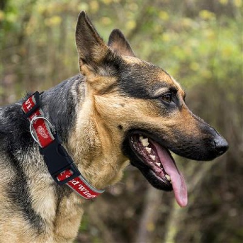 This NHL dog collar & Leash are made of 100% nylon with woven NHL team logo and team name. This collar has a silver metal D ring and black clip hardware.