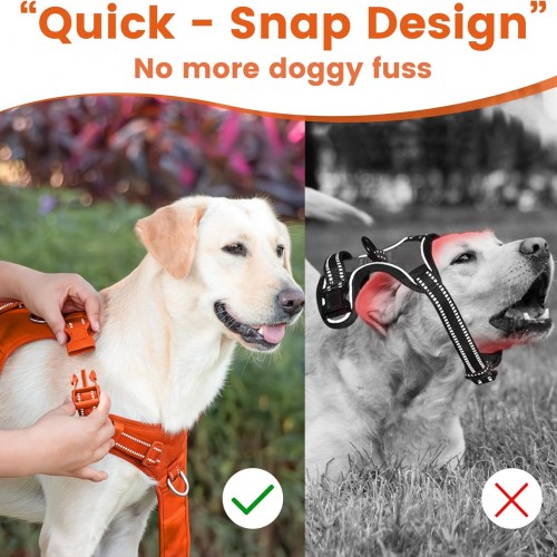 - Easy ON/OFF: It features a quick-release buckle with a lock at neck, ideal for dogs with big heads and small bodies that dislike over-the-head styles. The locking mechanism ensures your dog cannot slip out, offering enhanced safety and comfort during walks. Easy to put on and take off, no need step over your dog’s head.