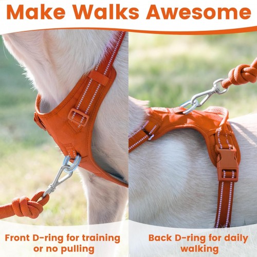 - No Pull and No Choke : Features a front D-ring to help guide your dog, reducing pulling and making walks more manageable. Back D-ring for a safe, secure leash attachment, ensuring comfortable and controlled daily walking.