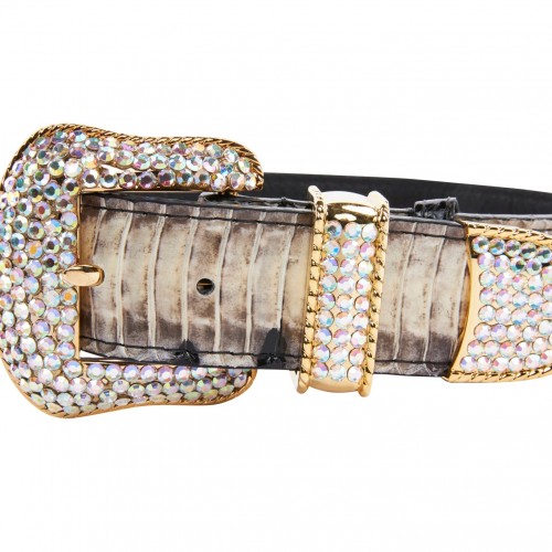 Off White/Black Snake With Gold Swarovski Crystal Hardware Collar & Leash Set