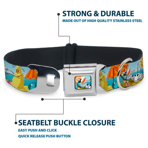 Olaf Tanning Pose Full Color Seatbelt Buckle Collar – Olaf Summertime Beach Scenes