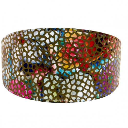 Be the first to review “Olive Floral Mosaic Italian Leather 3 Wide Style Collar” Cancel reply