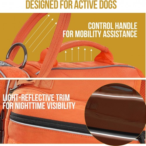 Onetigris Dyno Outdoor Harness for Dogs with Pockets, Front Range Pack, Saddle Bag Dog Hiking Vest with Handles