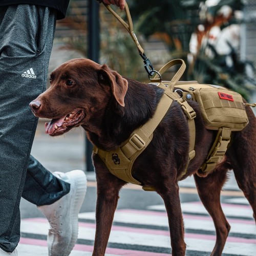 OneTigris Service Dog Vest Harness, Service Dog Cape Guardian Dog Backpack Harness with Pouches Dog Saddle Bag for Small Medium and Large Dogs (Brown, M)