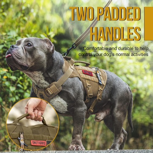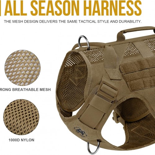 OneTigris Tactical Dog Harness for Small Dogs, No Pull Small Dog Vest Harness Breathable Military Dogs Molle Vest with Handles, Walking Hiking Training (Brown, XS)
