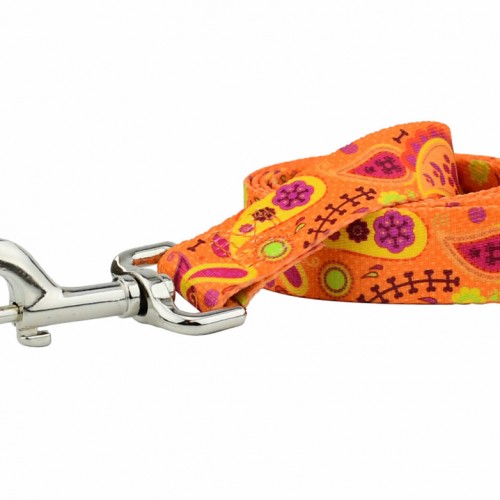 Orange Paisley Dog Collars & Leash (1″ Wide)