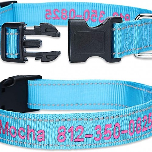 Personalized Dog Collar, Custom Embroidered Pet Name and Phone Number 4 Adjustable Sizes X-Small Small Medium Large Quick Release Buckle and D-Ring