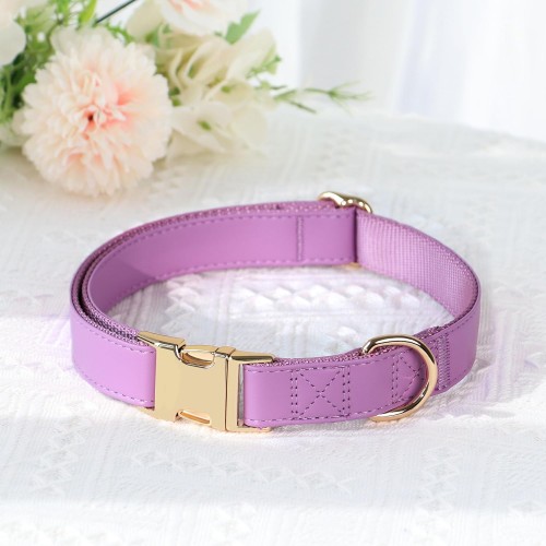 PET ARTIST PU Leather Dog Collar, Bright & Stylish Purple Dog Collar Girl with Quick Release Gold Metal Buckle, Soft Nylon Padded Durable Pet Collars Adjustable for Small Dogs, Neck Fit 9-14″