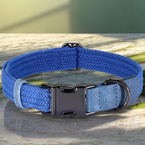 PET ARTIST Soft Cotton Dog Collar for Small Dogs in Tranquil Blue, Simple Dog Collar with Quick Release Metal Buckle & D Ring, S Size (10-16″)