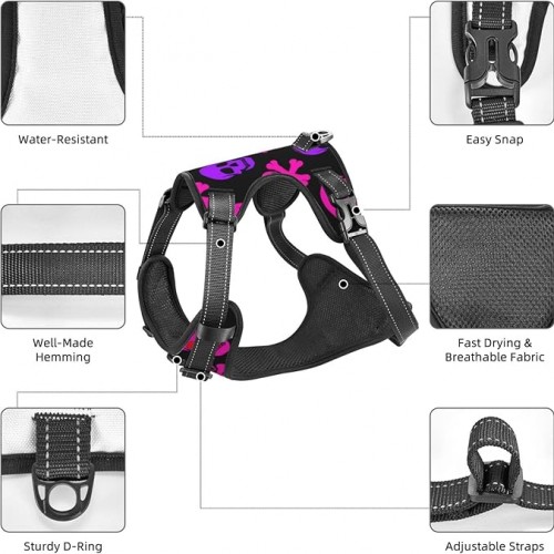 Pet Harness and Leash Purple and Pink Crossbones Skull Adjustable Breathable Pet Harness Animal Outdoor Walking Training Traction Rope Vest for Large Medium Small Dog Breeds