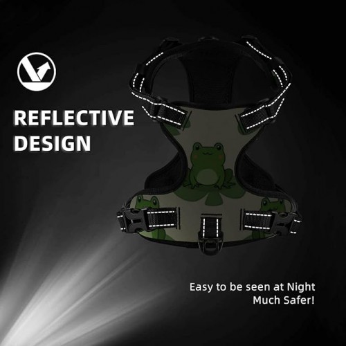 Pet Harness Leash Cute Frog Animal Green Frogs Dog Reflective Training Vest Adjustable Chest Collar Strap Traction for Outdoor Walking Traveling Vest Harnesses