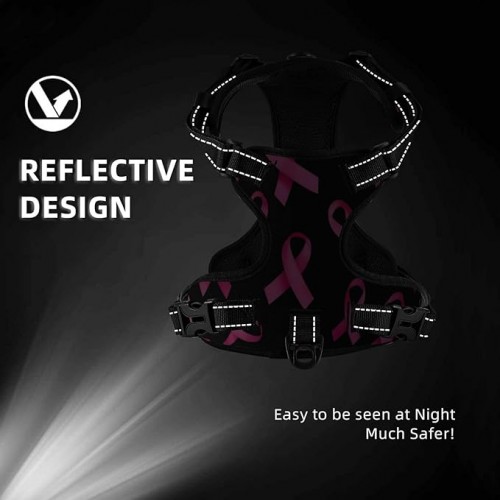 Pet Vest with Reflective Fabric for Large Medium Small Dog Breeds, Adjustable Breathable Breast Cancer Awareness Ribbons Black Pet Harness