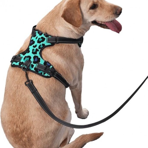 Pet Vest with Reflective Strip for Dog (S/M/L/XL), Adjustable Breathable Green Cheetah Leopard Print Pet Harness