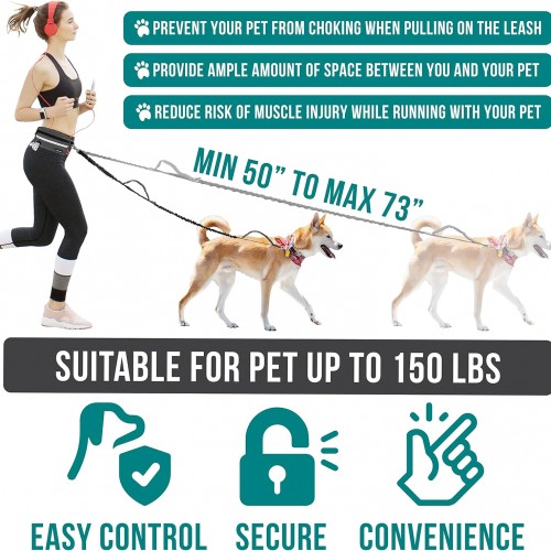 - WAIST LEASH FOR DOG WALKING: Our dog leash for small dogs features a strong dog leash shock absorber bungee system to minimize sudden pulls or reduced movement impacts, providing a comfortable and controlled experience. Crafted with double stitching, our dog leash waist walker can support your puppy, big and large dogs. This long dog leash for dog training that is stretchy up to 73 inches max to offers your dog more room to explore and enjoy their outdoor adventures.
