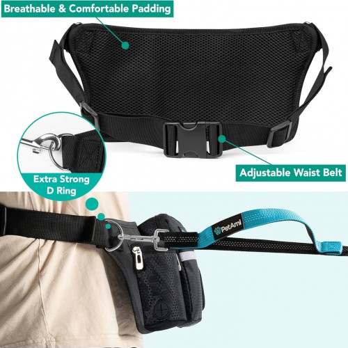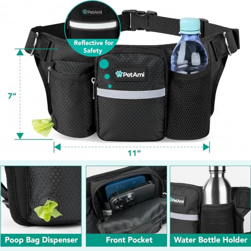 PetAmi Premium Hands Free Dog Leash for 2 Dogs, Adjustable Waist Belt Leash for Dog Walking, Fanny Pack Accessories Bag Dual Bungee Leash for Running, Hiking, Jogging, Biking, Black