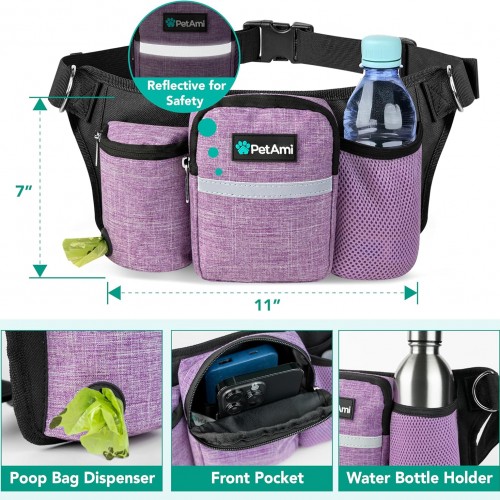 - Waist Belt Leash for Dog Walking: Equipped with 2 dog leashes, this waist bag fanny pack allows you to be hands free during dog walking, jogging or running. Comes with multiple pockets for holding accessories and essentials and water bottle, the fanny pack is an outdoor camping must have for pet lovers.