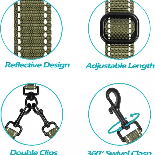 - No Tangle Double Dog Leash: 360° swivel clasps help to keep your dogs from getting tangled together. No need to worry about getting twisted two dog leash when dogs switch sides