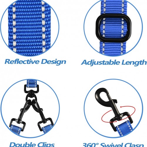 PetBonus Double Dog Leash, No Tangle Dual Leash, Reflective Walking Training Lead, 4 Comfortable Padded Handles for 2 Dogs with Collapsible Bowl and Waste Bags (Blue, Large)