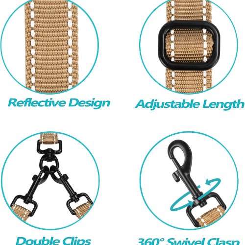 - No Tangle Double Dog Leash: 360° swivel clasps help to keep your dogs from getting tangled together. No need to worry about getting twisted two dog leash when dogs switch sides