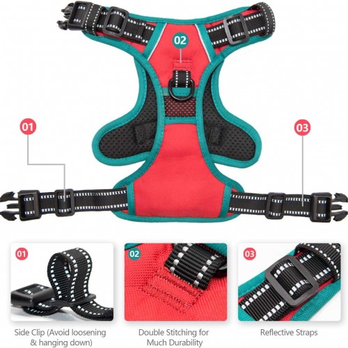 PHOEPET 2019 Reflective Dog Harness Large Breed Adjustable No Pull Vest with with Handle 2 Metal Rings 3 Buckles [Easy to Put on & Take Off](L, Red)
