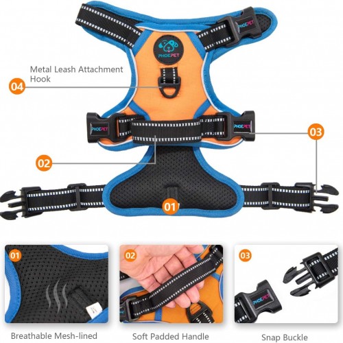 PHOEPET 2019 Reflective Dog Harness Large Breed Adjustable No Pull Vest with with Handle 2 Metal Rings 3 Buckles [Easy to Put on & Take Off](XL,Orange)