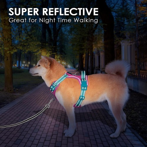 PHOEPET No Pull Dog Harness, Unique Colors Reflective Adjustable Dog Vest, with Soft Training Handle Metal Clips for Small Medium Large Dogs (Pink Base & Green Straps,XL)