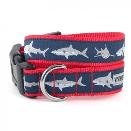 This adjustable collar focuses on both durability and style, featuring woven ribbon sewn onto comfortable and durable nylon webbing with a snap clasp and nickel-plated D-ring.