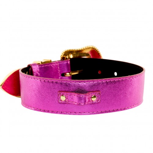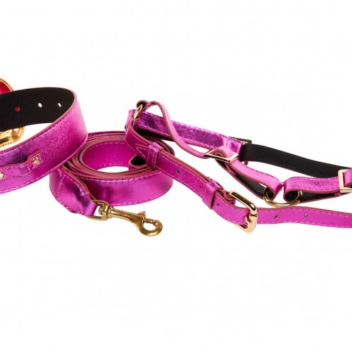 Pink Foil Italian Leather/Swarovski Crystal Collar, Leash, Harness Set