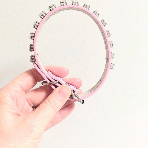 Pink Leatherette Collar With Crystal Diamonds