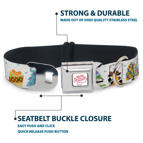 Pixar TIS THE SEASON Script Full Color White/Red Seatbelt Buckle Collar – Pixar Holiday Collection Character Gifts Lineup/Stars White/Blues