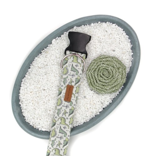 This collar is pictured with an upgraded red buckle.