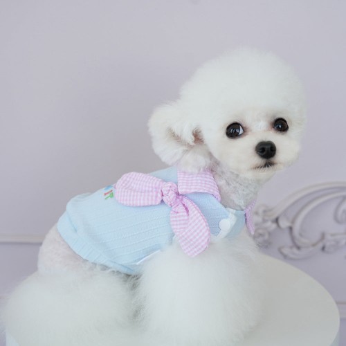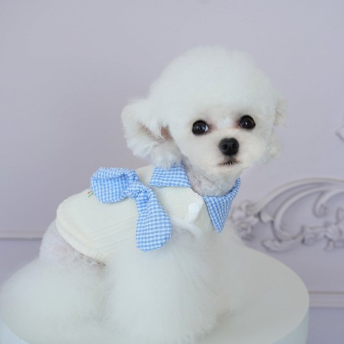 Plaid Bow Collar Decor Letter Printed Dog Cat Vest