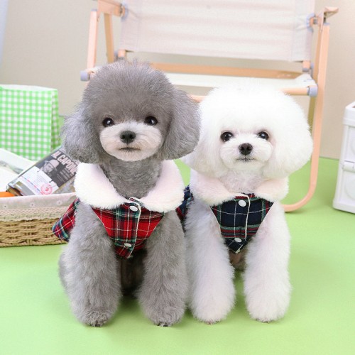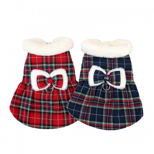 Plaid Fleece Bowknot Dog Harness Dress Coat