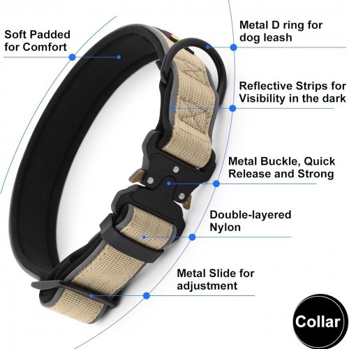 Plutus Pet Tactical Dog Collar, Reflective, Adjustable Heavy Duty Dog Collar, Soft Padded and Comfortable, for Small Medium and Large Dogs (Beige, XL)