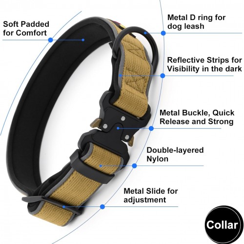 Plutus Pet Tactical Dog Collar, Reflective, Adjustable Heavy Duty Dog Collar, Soft Padded and Comfortable, for Small Medium and Large Dogs (Brown, L)