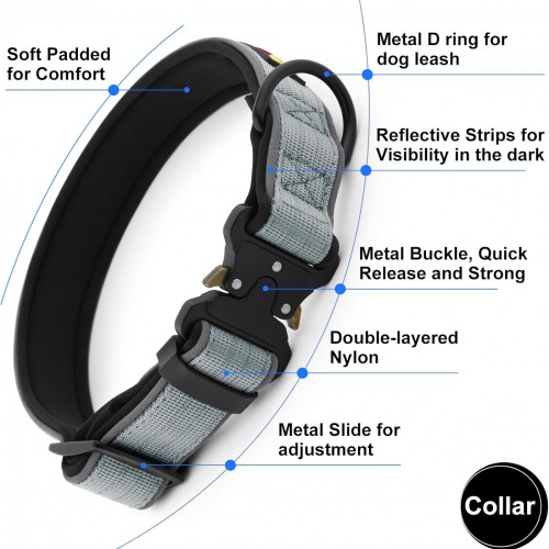 Plutus Pet Tactical Dog Collar, Reflective, Adjustable Heavy Duty Dog Collar, Soft Padded and Comfortable, for Small Medium and Large Dogs (Gray, M)