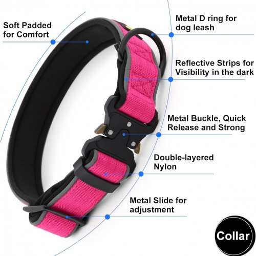 - Secure Fit. Equipped with quick-release metal buckle and sturdy metal adjuster, our thick collar ensures a secure and customizable fit for your dog, giving you peace of mind during outdoor activities.