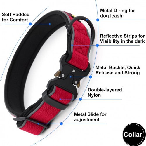 - Secure Fit. Equipped with quick-release metal buckle and sturdy metal adjuster, our thick collar ensures a secure and customizable fit for your dog, giving you peace of mind during outdoor activities.