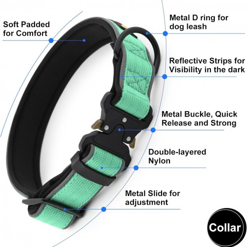 - Secure Fit. Equipped with quick-release metal buckle and sturdy metal adjuster, our thick collar ensures a secure and customizable fit for your dog, giving you peace of mind during outdoor activities.