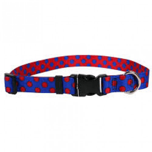 Our standard easy-clip designer collars are made in the U.S.A. of 100% vibrant color-fast polyester with durable plastic buckles, plastic slip locks, and a metal D-ring. Best of all they are washable!