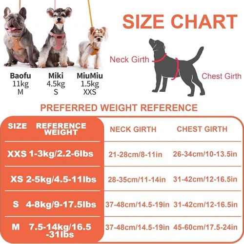 - No pull dog harness:No pull dog harness:Weight as low as 1.19 oz,undoubted ultra-light harness.Perfect tailoring design,patented rounded adjustment buckle,effectively protect the dog’s bones and muscles during exercise to avoid injury.